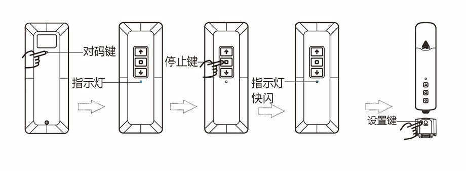 ◆長(zhǎng)按電機(jī)【設(shè)置鍵】,直到電機(jī)【指示燈】紅色閃一下,松手;