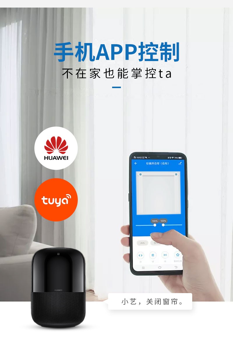 無線窗簾WIFI語音控制神器涂鴉智能電動窗簾伴侶羅馬桿窗簾助力器