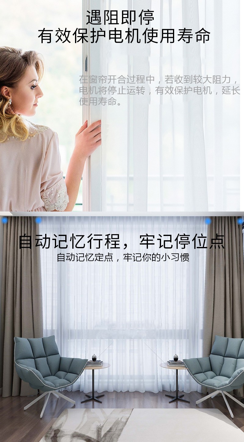 無線窗簾WIFI語音控制神器涂鴉智能電動窗簾伴侶羅馬桿窗簾助力器